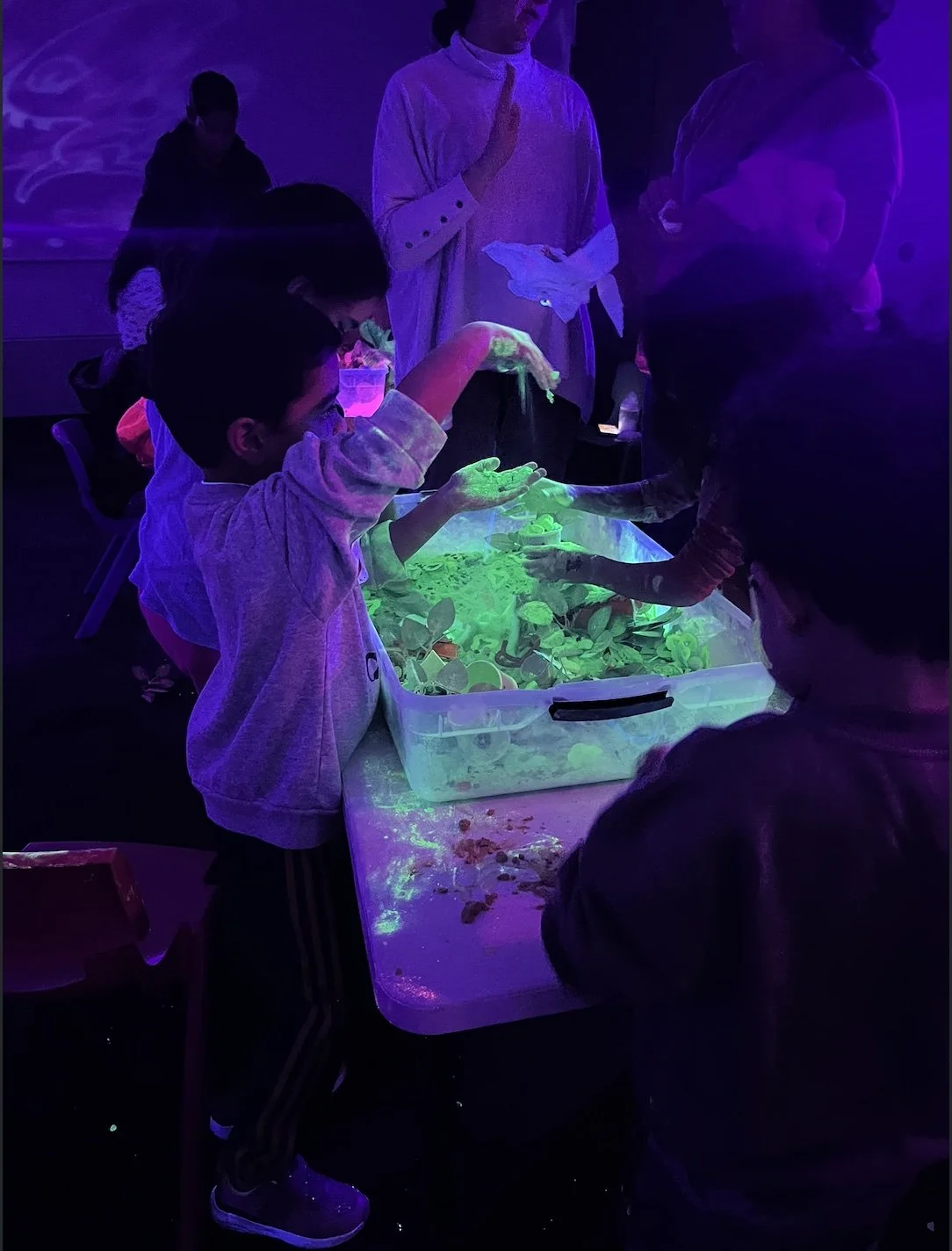 I designed and facilitated a glow-in-the-dark dinosaur-themed event that transformed the library space into an interactive prehistoric environment. The program combined sensory exploration, creative crafts, and movement-based activities to engage children and families in hands-on learning.